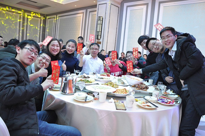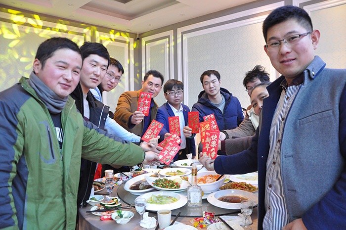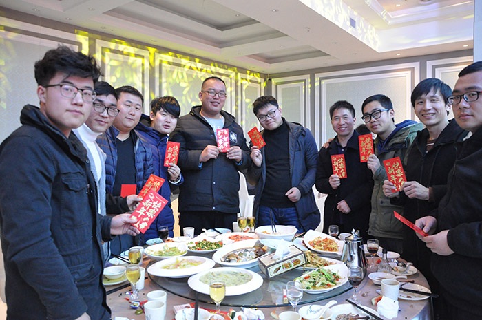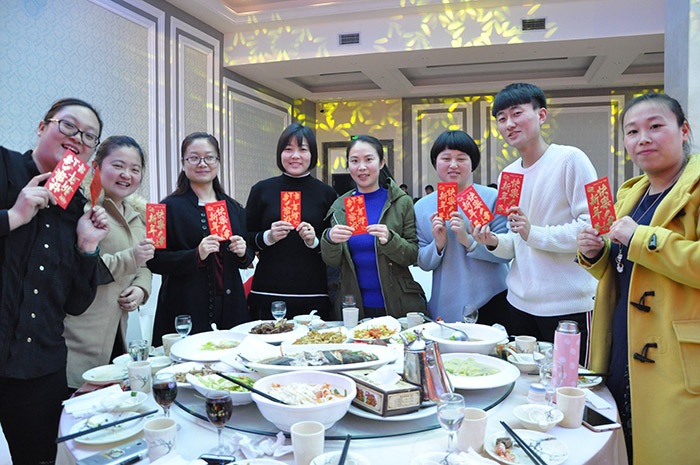 (董事長為集團家人們一一送達新春祝福并發放紅包)
